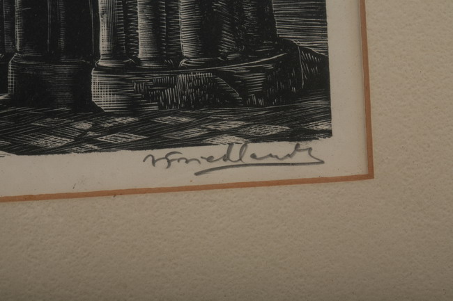 ISAAC FRIEDLANDER (American, b. 1890-1968). CATHEDRAL RUINS, signed and noted "Trial Proof" in pencil lower margin. Etching - Framed, image: 11 in. x 9 in.
