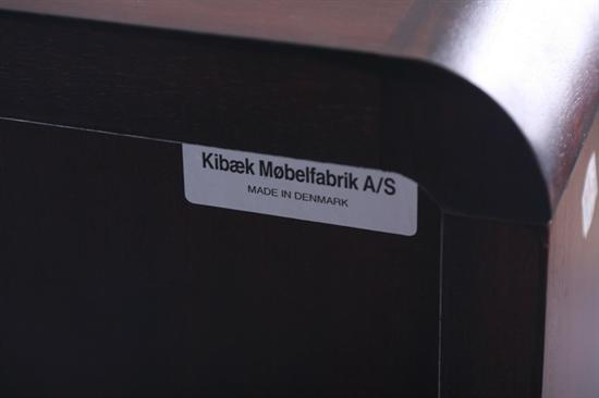 DANISH MODERN ROSEWOOD CHEST OF DRAWERS,20th century, with tamboured door and mirror. Five-drawer facade with sliding door opening to additional shallow drawers and shelves; on plinth base - Case: 46 in. x 51 in. x 19 in. Mirror: 43 in. x 35 1/2 in. Estimate $300-400
