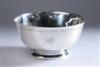 TIFFANY STERLING SILVER WOLF'S HEAD SOCIETY PRESENTATION BOWL. Circa 1941, pattern 22967. Inscribed "Anne Droop Maguire, John Greenway Keller, December 3, 1949", the rim engraved with continuous band of names, reverse engraved with Wolf's Head Society emblem of wolf and inverted ankh - 35 oz., 10 in. diam.