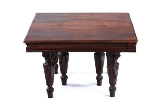 RENAISSANCE REVIVAL WALNUT EXPANDING DINING TABLE, late 19th century. Molded-edge top over shaped frieze on substantial turned and reeded legs - 29 in. x 46 1/2 in. x 45 1/2 in. Estimate $200-400
