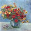DUMITRU DANIELOPOL (American/Romanian, 1905-1982). CONNECTICUT FLOWERS, signed lower right, also signed, dated 1976 and titled on reverse. Oil on canvas - Framed, 22 in. x 22 in.