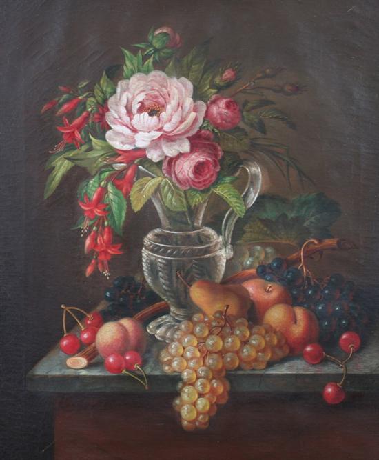 GOGLER (Continental School, 19th century). STILL LIFE WITH FRUIT AND FLOWERS, signed on reverse. Oil on canvas C - Framed, 24 in. x 20 in. Estimate $200-300