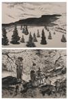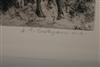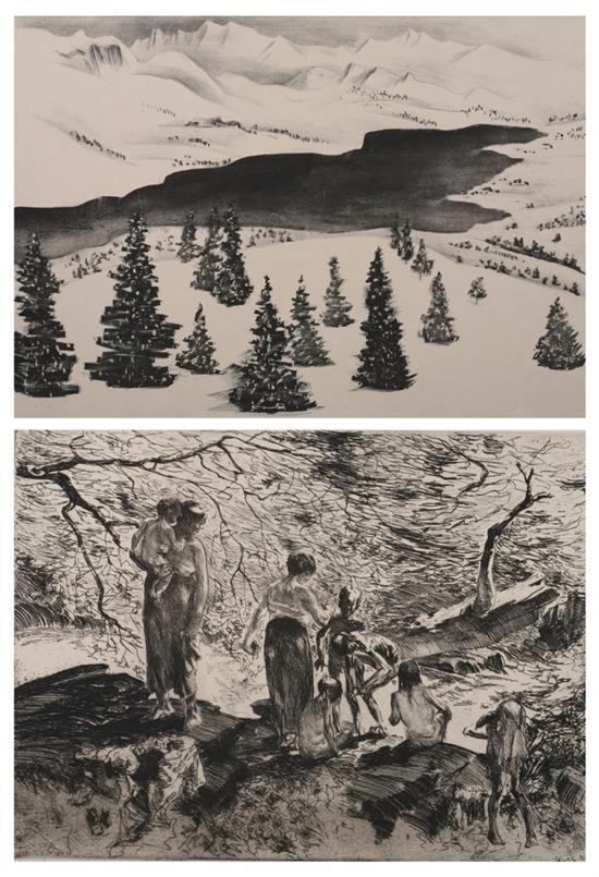 ALDOLF ARTHUR DEHN (American, 1895-1968) LAKE IN WINTER TIME, signed, dated 1932 lower right and numbered 9/29 and titled lower left. Lithograph, with original label from Associated American Artists Galleries, New York - Unframed, plate: 10 1/2 in. x 15 in. Estimate $200-300