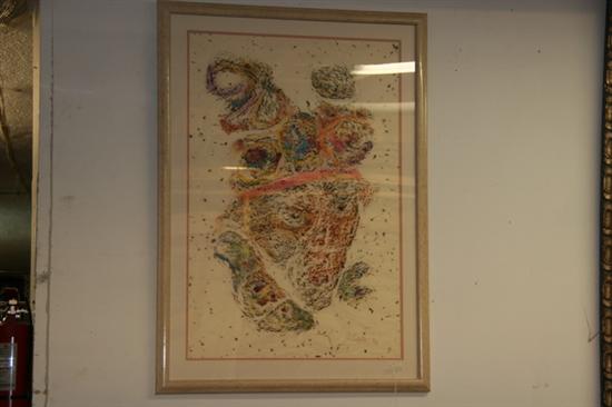 BIDDLE (American, 20th century). PORTRAIT OF FIGURE WITH HAT, signed and dated '90 lower right. Color print on paper - Framed, sight: 35 in. x 23 in. Estimate $100-200