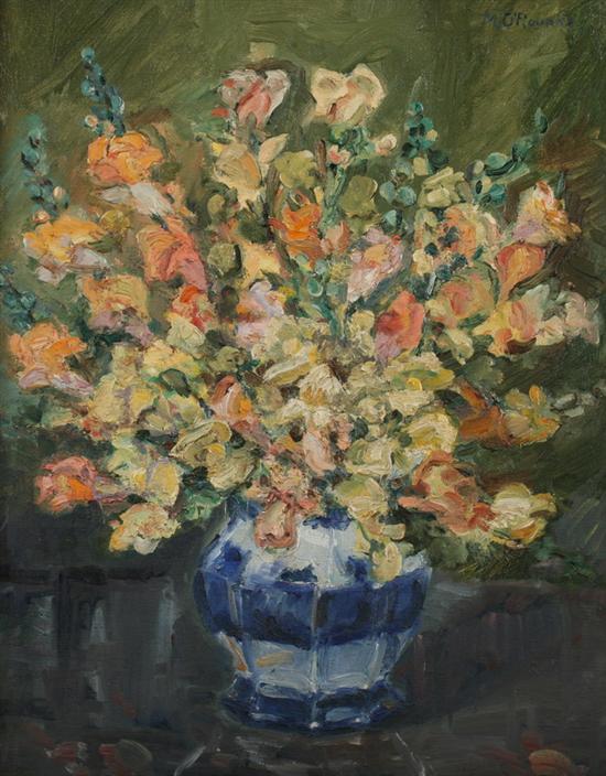 Sale 44 Lot 617 M. O'ROURKE (American, 20th century). FLORAL BOUQUET, signed upper right. Oil on board - Framed, 20 in. x 15 in. Estimate $200-300 Sold for $90