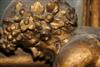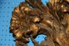 With loss to one top-edge of double flower head crest; gilt gesso over wood, has patinated with a thick layer of grime, dust, and air pollution; flaking scattered lifting of gilt, crackling finish, some hair-line age cracks; and heavily scratched old plate.