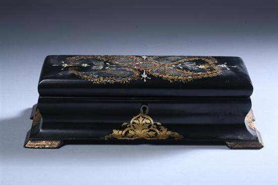 Sale 44 Lot 1065 VICTORIAN PAPIER MÂCHÉ AND MOTHER-OF-PEARL INLAID GLOVE BOX. late 19th century. - 3 in. x 10 1/2 in. x 4 1/2 in. PROVENANCE: Estate of Psychic Jeane Dixon, Washington, DC Estimate $100-200 PROVENANCE: Estate of psychic Jeane Dixon, Washington, DC