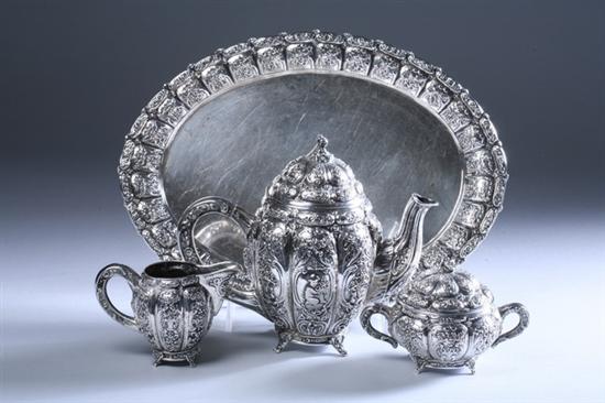 Sale 44 Lot 1016 FOUR-PIECE CONTINENTAL SILVER DIMINUTIVE COFFEE SERVICE. late 19th century, 800 silver standard. Comprising coffee pot, covered sugar, creamer and serving platter. Repoussé decoration of floral swags and scrolls - 33 oz.; 6 1/2 in. high, coffee pot. PROVENANCE: Estate of Psychic Jeane Dixon, Washington, DC Estimate $350-500 PROVENANCE: Estate of psychic Jeane Dixon, Washington, DC