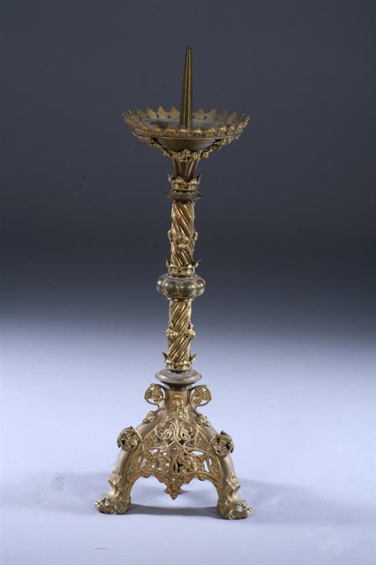 Sale 44 Lot 1090 CONTINENTAL RENAISSANCE-STYLE GILT-BRONZE PRICKET CANDLESTICK. 19th century. Tripartite base, raised on lion head feet, swirling baluster-form standard - 23 3/4 in. high. PROVENANCE: Estate of Psychic Jeane Dixon, Washington, DC Estimate $300-500 PROVENANCE: Estate of psychic Jeane Dixon, Washington, DC