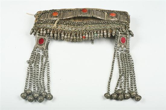INDIAN CARNELIAN INLAID SILVER HEADDRESS, 19th century. - 6 1/2 in. diam. Estimate $75-100