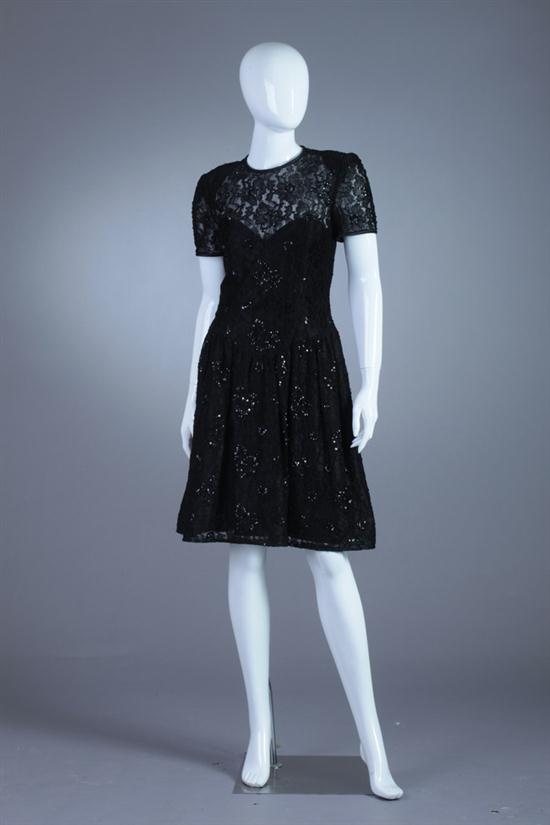 MORTON MYLES SEQUIN-EMBELLISHED BLACK LACE DRESS. 1980s. Estimate $50-100