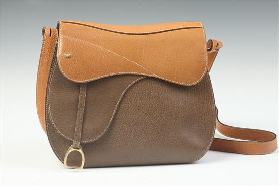 GUCCI BROWN AND TAN LEATHER SADDLE BAG, Made in Italy, #001-46-4914. - 8 in. x 9 1/4 in. x 3 in. Estimate $400-600