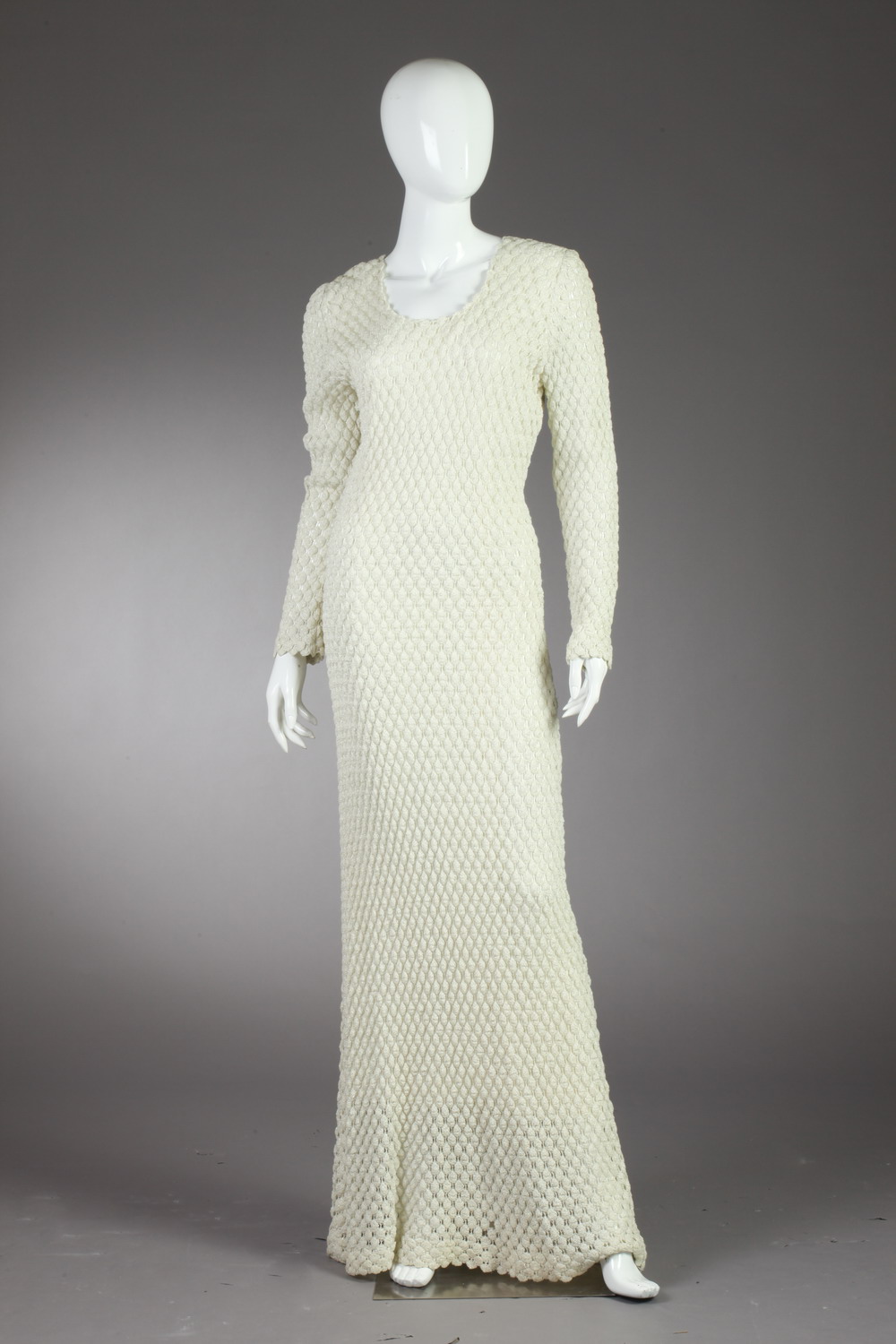CUSTOM-MADE WHITE AND SILVER METALLIC THREAD CROCHET DRESS,1980s. With white lining Estimate $40-60