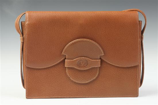 VALENTINO BROWN LEATHER HANDBAG. With beige suede interior - 8 in. x 10 1/2 in. x 2 in. Estimate $150-250