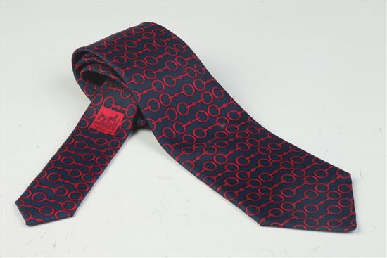 HERMÈS SILK TIE, No. 624 TA. Blue ground with red pattern; original box Estimate $100-150