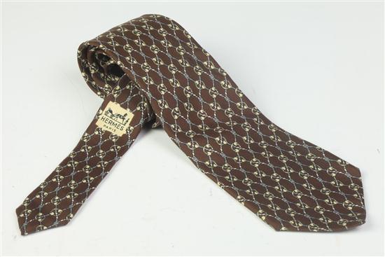 HERMÈS SILK TIE, No. 691 OA. Brown ground with yellow pattern; original box Estimate $100-150