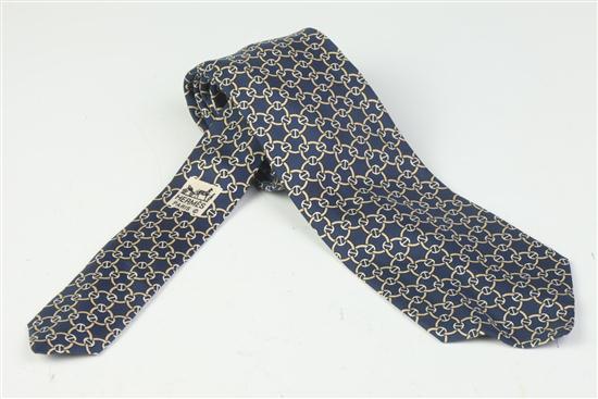 HERMÈS SILK TIE, No. 7459 HA. Blue ground with cream pattern; original box Estimate $100-150