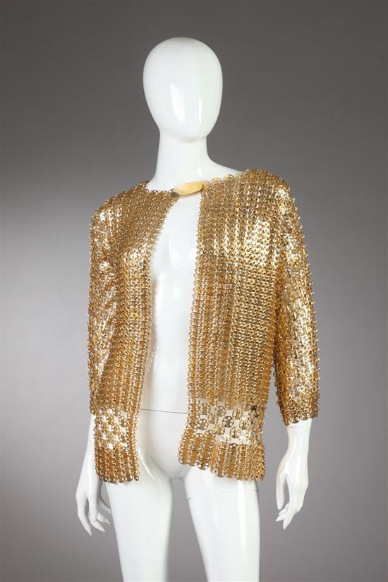VINTAGE DESIGNER GOLD-TONE "CHAINMAIL" EVENING JACKET, 1970s; size approx. 8-10. Comprising circular pierced and linked discs Estimate $200-400 In overall excellent condition - without missing, damaged or tarnished links.