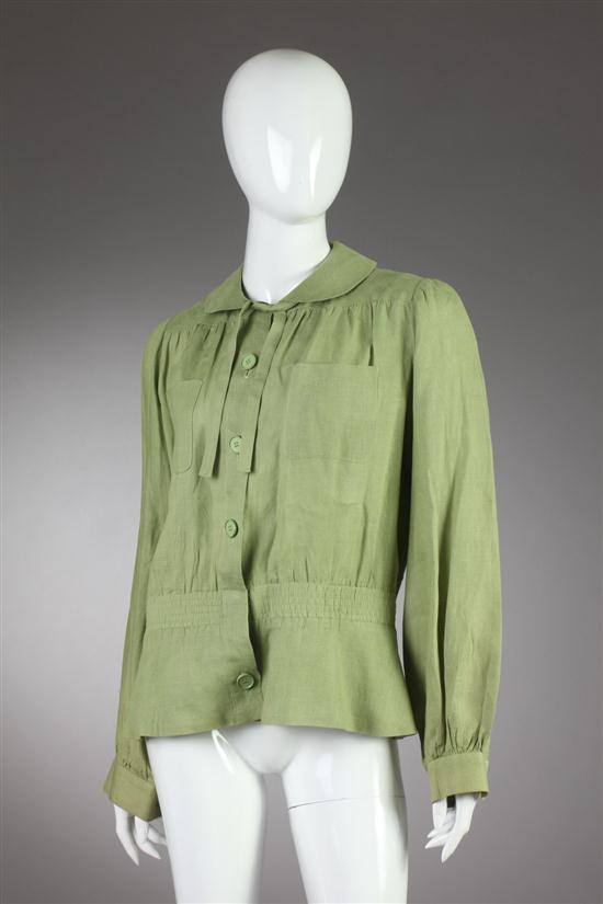 VALENTINO BOUTIQUE GREEN LINEN JACKET BLOUSE. 1970s; size 12. Estimate $75-100