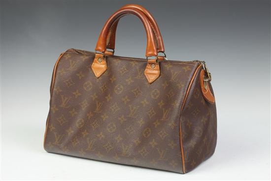 LOUIS VUITTON MONOGRAM CANVAS SPEEDY HANDBAG. 1970s. With brown leather trim - 8 in. x 12 1/2 in. x 7 in. Estimate $300-400