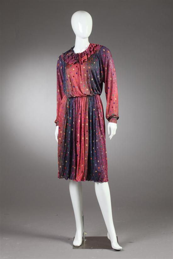 MISSONI SILK DRESS. 1980s; size medium. Polychrome print, with diamond pattern Estimate $100-150