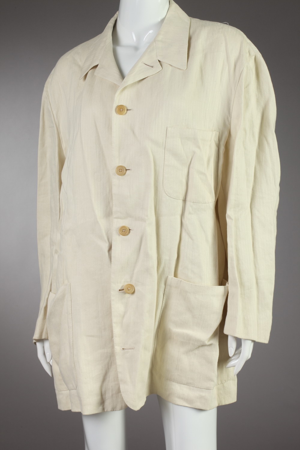 HERMÈS MEN'S BEIGE LINEN BLAZER. 1980s; Italian size 54. Estimate $100-200