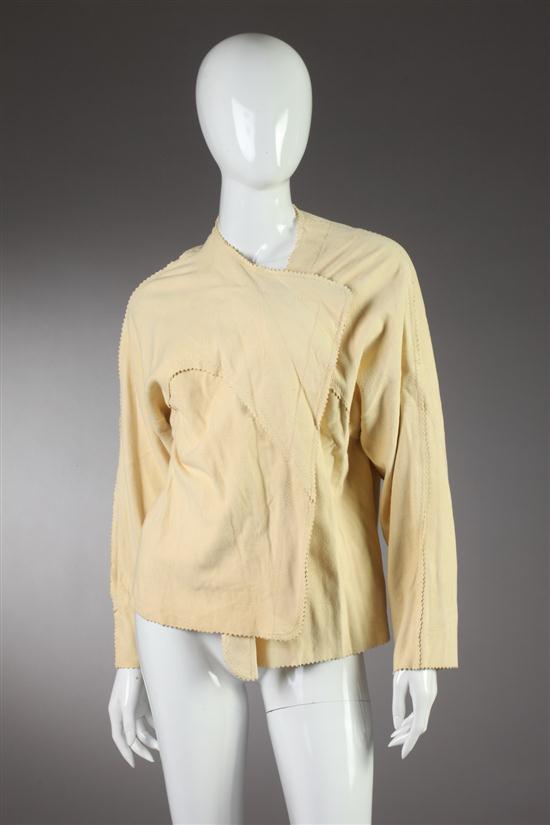 STEPHEN BURROWS' WORLD CHAMOIS FAUX SUEDE JACKET. Open style, with exposed seams Estimate $150-250