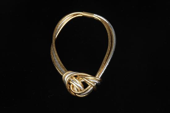 ITALIAN 18K YELLOW AND WHITE GOLD "GIFT CORD" SLIP-ON, FLEXIBLE BANGLE BRACELET. Estimate $100-150