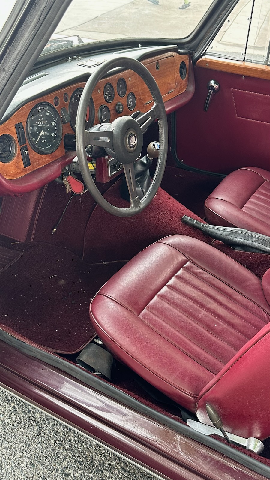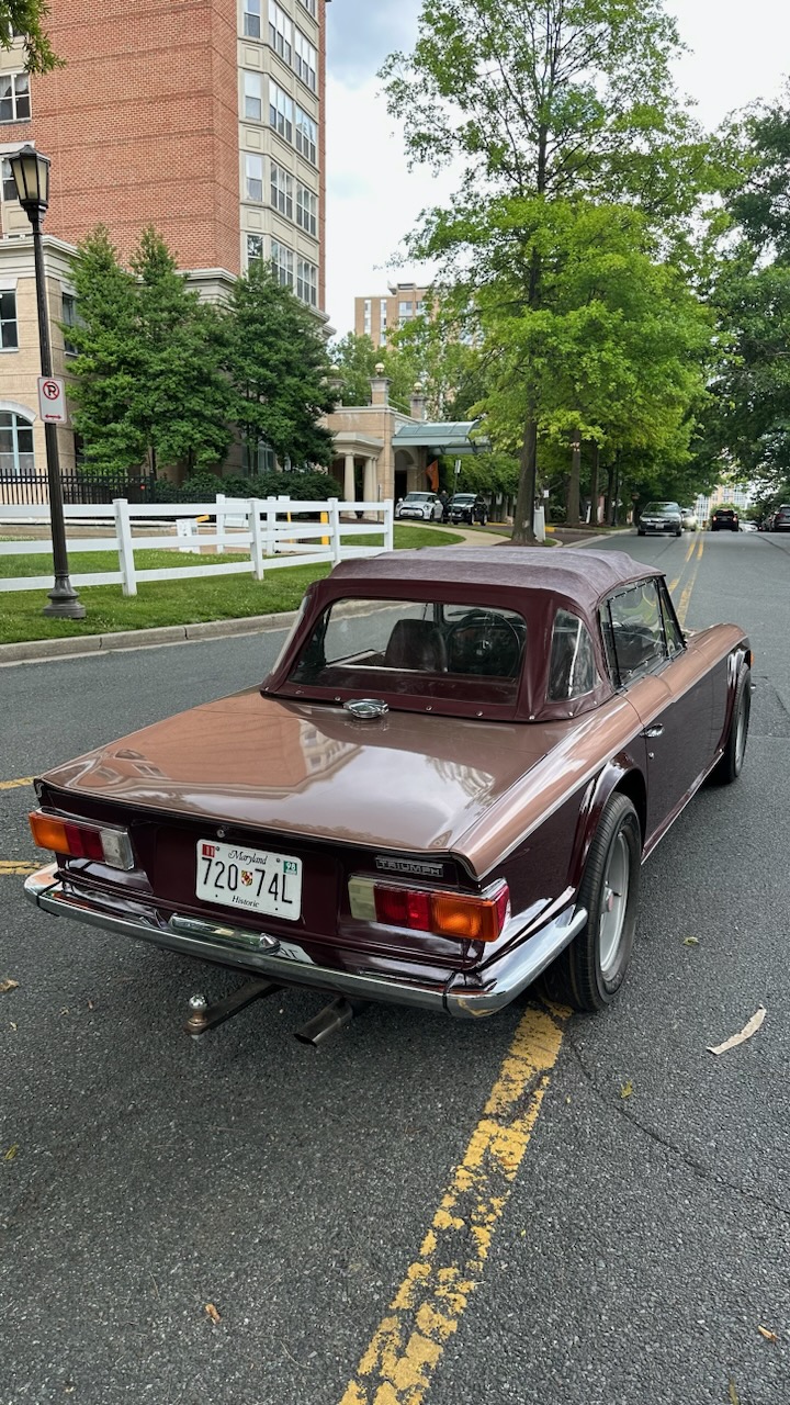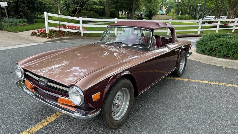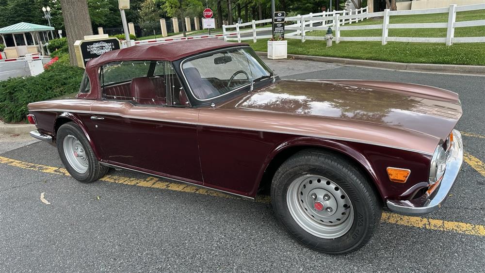 1970 TRIUMPH TR-6 2+2 CUSTOM MADE FOUR-SEAT CONVERTIBLE. VIN CC54312L. New engine with fine tuning of cam timing. Engine has less than 1000 miles. Stretch 19 in. for backseat. Custom-made top-tonneau and hood. Front of top frame pulls forward, comes off completely for storage in trunk with remaining top frame folded behind seat Runs well. New battery Rear wheel drive Manual transmission Four -speed Burgundy exterior with light brown accents Burgundy interior and seats Lots 3, 4 and 5 can be inspected at Sloans & Kenyon . Please call 301-634-2330 to schedule an appointment Acceptable forms of payment on this lot: Cash, Certified Check, or Wire Transfer Sold in "AS IS" condition - Mileage: 92,242. Estimate $15,000-25,000 Sloans & Kenyon is pleased to offer a selection of vintage automobiles from the Estate of Leonard Renkenberger, Jr., of Easton, MD. A British car enthusiast, Mr. Renkenberger was one of the founders of the North American MGA Register and the Triumph TR6 Owners Club, both of which became international organizations. He was a member of the Chesapeake Chapter of the New England MG 'T' Register and the Rolls-Royce Owners' Club and traveled extensively in his classic and antique autos. Mr. Renkenberger was skilled in restoration work and restored a number of British cars and wooden boats. He was well-known for compiling several service and restoration manuals for British sports cars, one of which is prominent internationally.