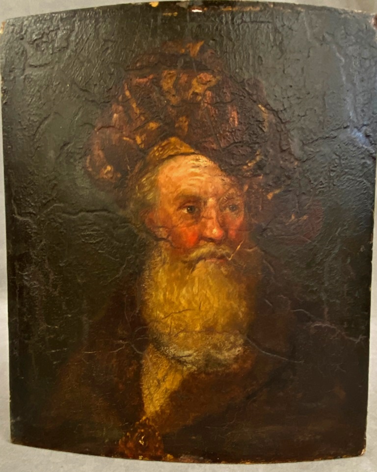 AFTER CHRISTIAN WILHELM ERNST DIETRICH (Dutch, 18th century). Portrait of an Old Bearded Man, unsigned. Oil on board. Unframed. - 9 x 8 inchesEstimate $250-350