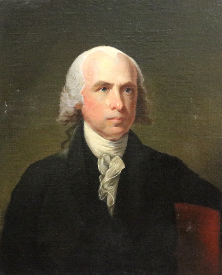 AFTER GILBERT STUART (American, 19th century). James Madison, Early 20th century oil on canvas artwork. Unsigned. Unframed. - Sight (approx.): 27 x 22 inches.Estimate $100-150