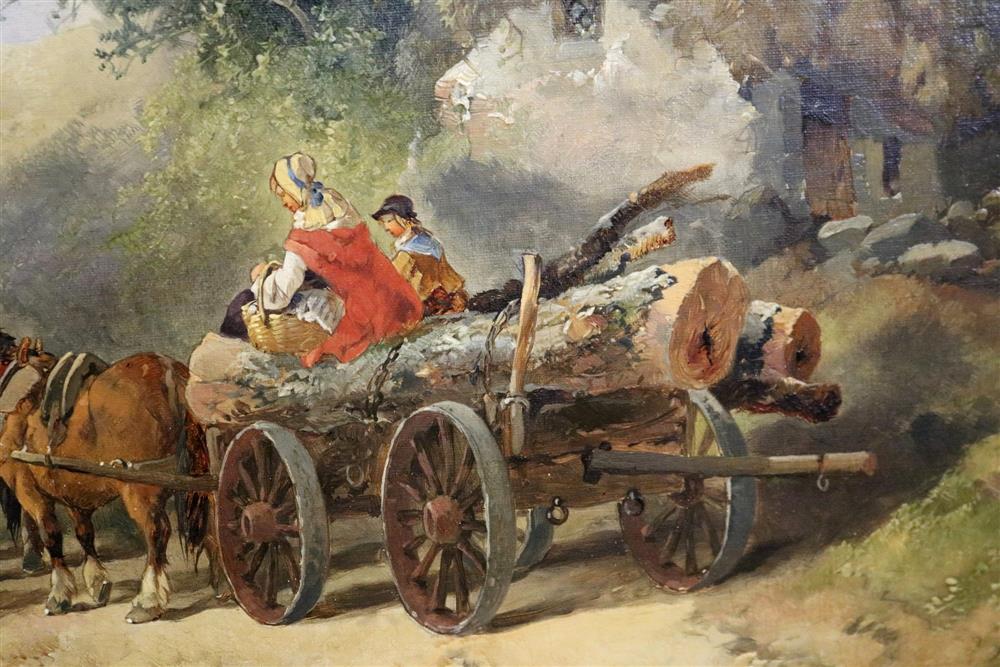 AFTER JOSEPH HORLOR (British, 1809 - 1887). The Timber Wagon, 19th century oil on canvas artwork. Unsigned. Framed. - Sight (approx): 24 x 35 inches (excluding frame)Estimate $300-400