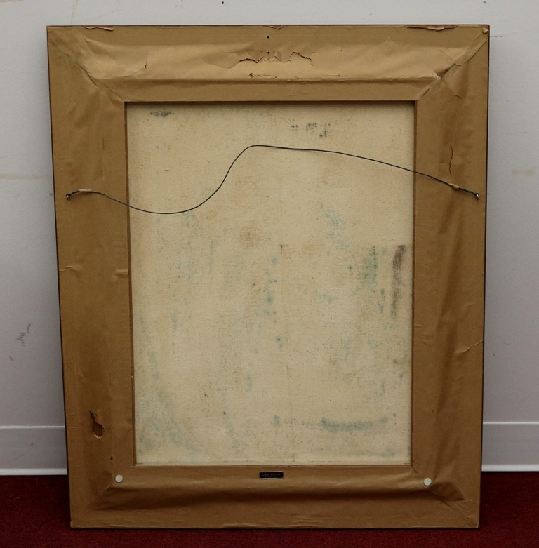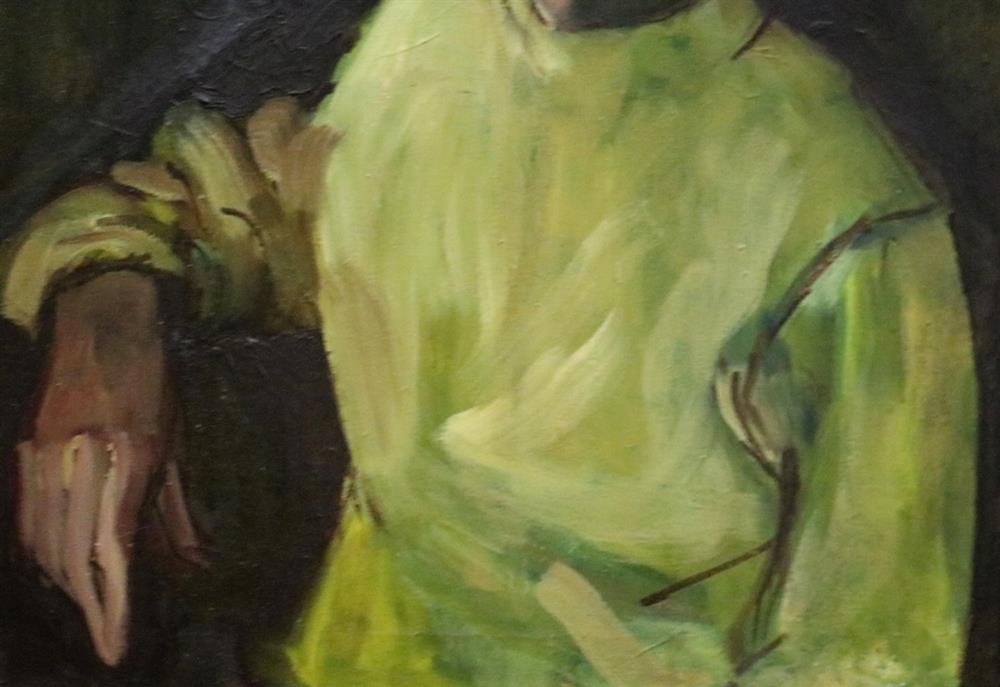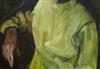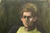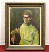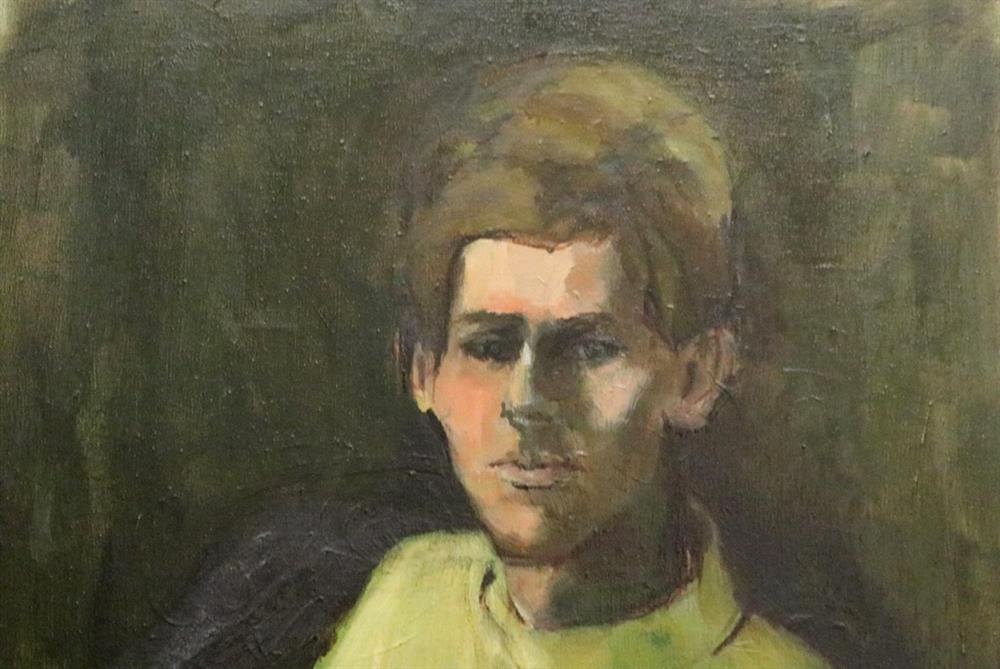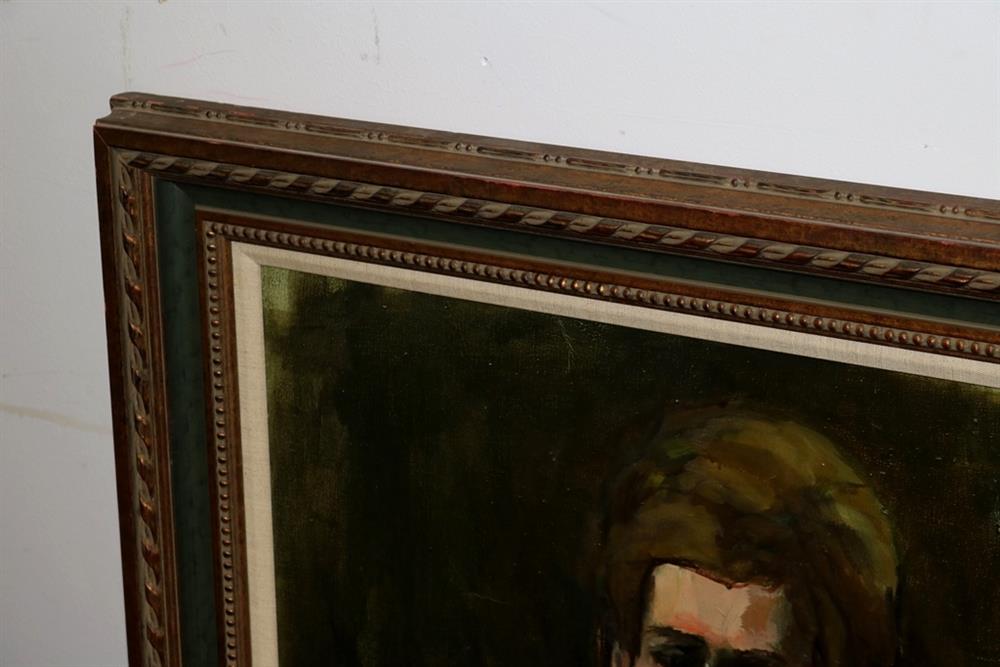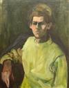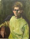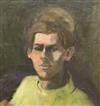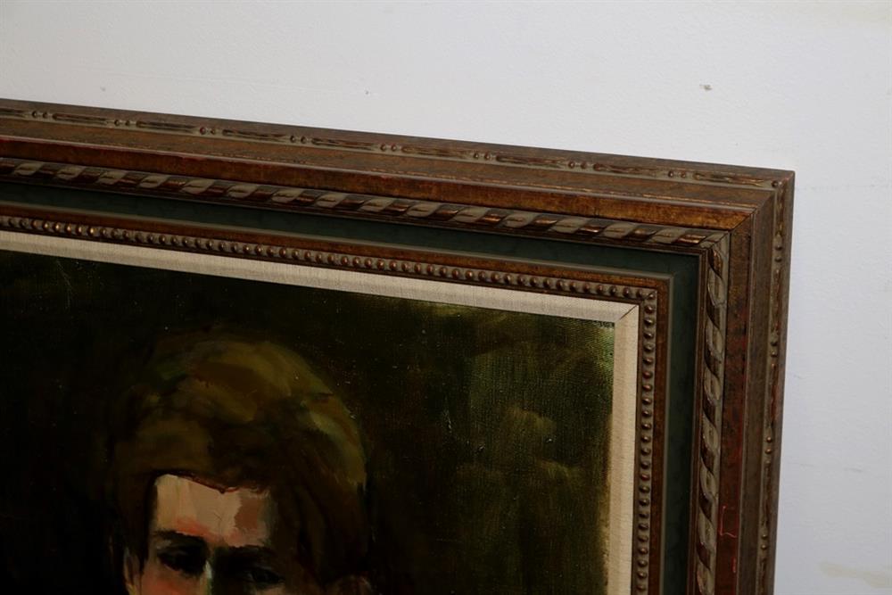 AMERICAN SCHOOL (20th century). Potrait of a young man in a yellow pullover, Oil on canvas. Unsigned. Framed. - 28 x 21 inches; frame: 35 x 29 inches