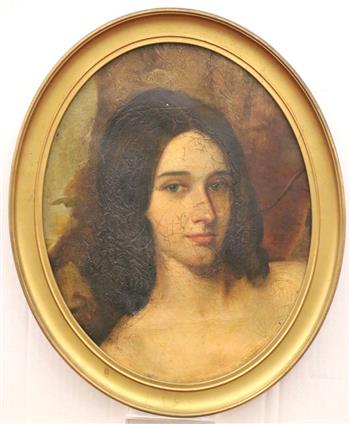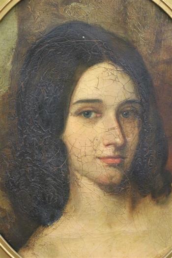 AMERICAN SCHOOL (Late 19th Century). The Blue Eyed Lady, Oil on canvas. Framed. Unsigned. - 14.75" x 11.5"; Frame: 17.5" x 14.5"Estimate $200-300