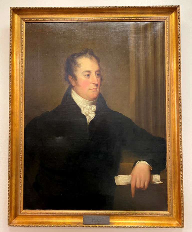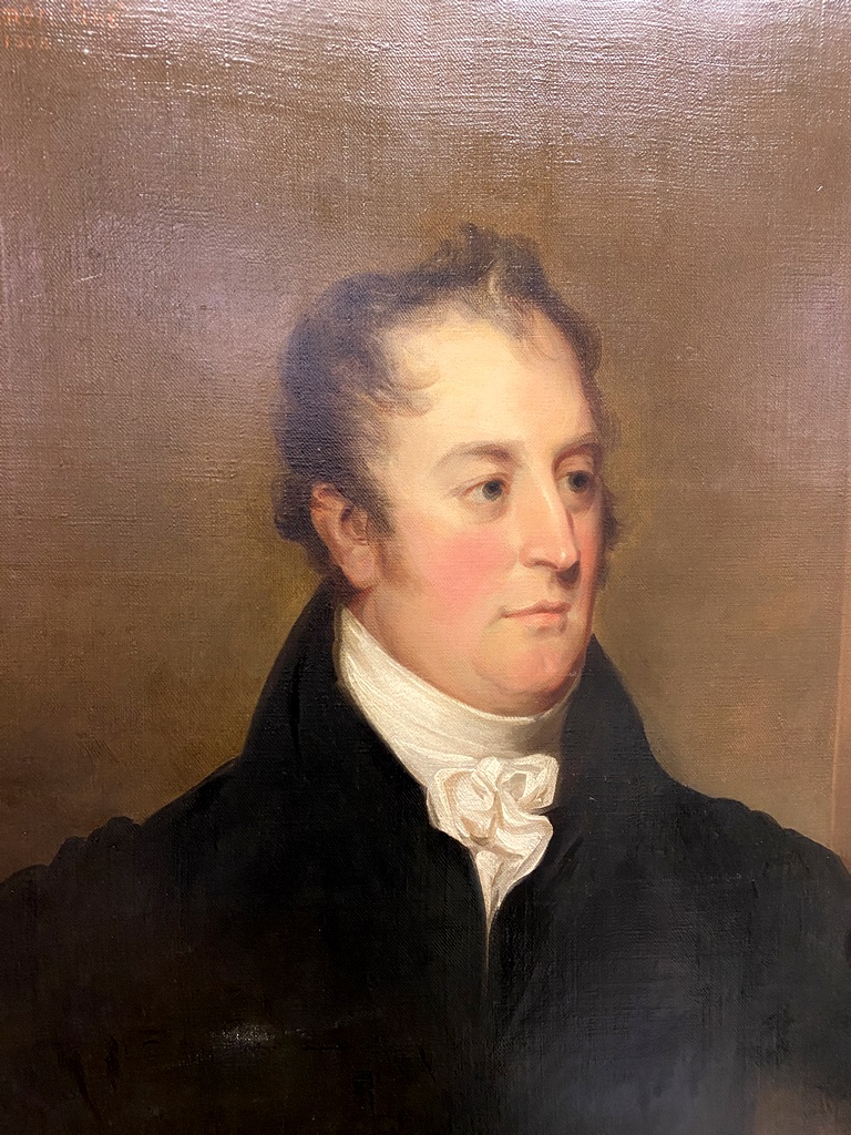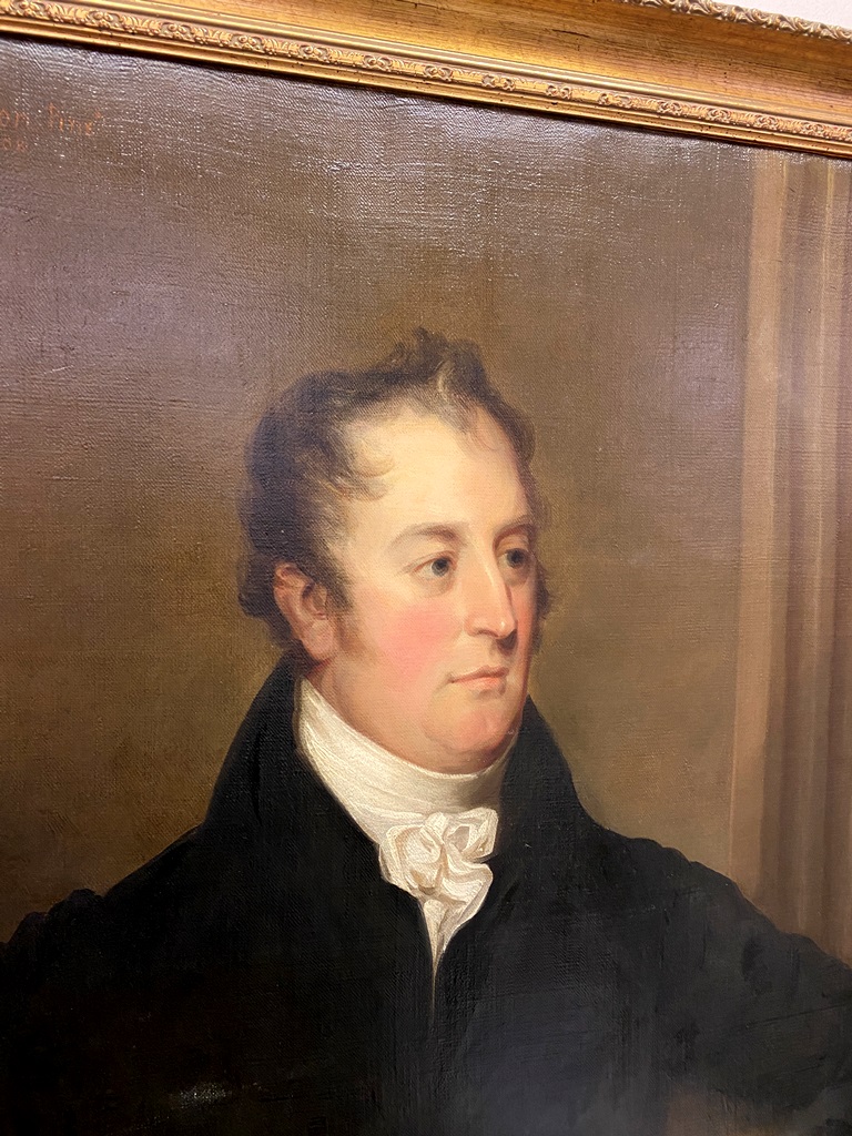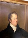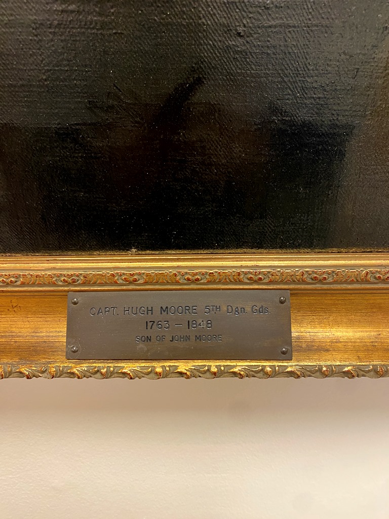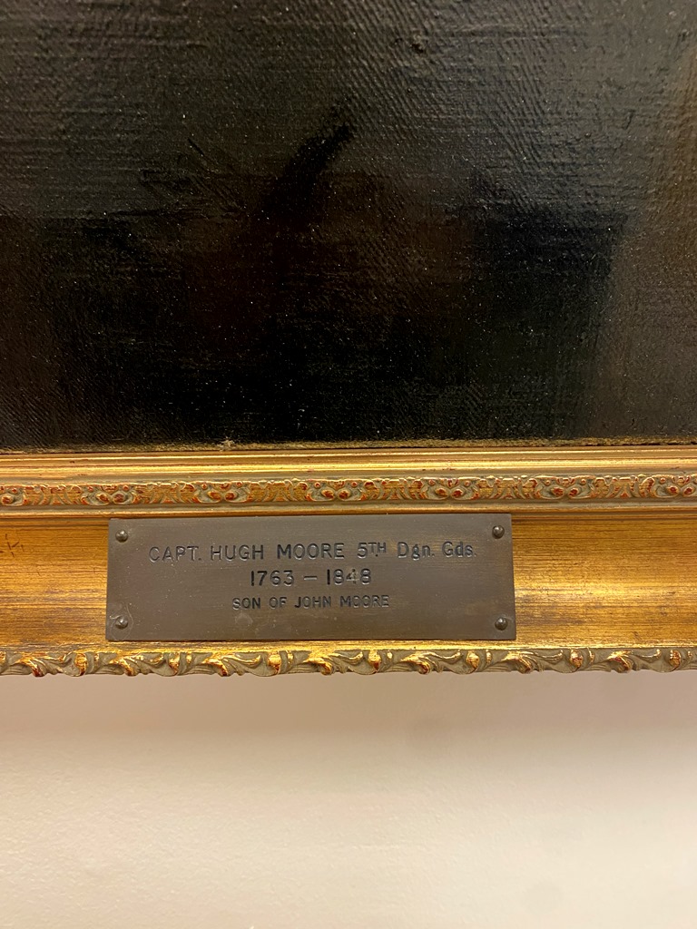 ATTRIBUTED TO THOMAS ROMNEY ROBINSON (British / Irish, circa 1756 – 1810). Portrait of Captain Hugh Moore of the 5th Dragoon Guards, 1808, Oil on canvas. Signed "T Robinon, Pinx, 1808" upper left hand corner. Based on the plaque, the person is Captain Hugh Moore of the 5th (Princess Charlotte of Wales's) Dragoon Guards and his lifespan: 1763 – 1848; and he is the son of John Moore. Framed. . - 37 x 28 inches; frame: 43 x 34 inches Estimate $500-700