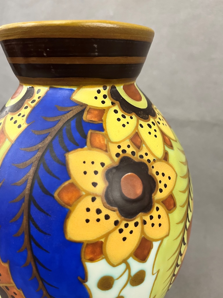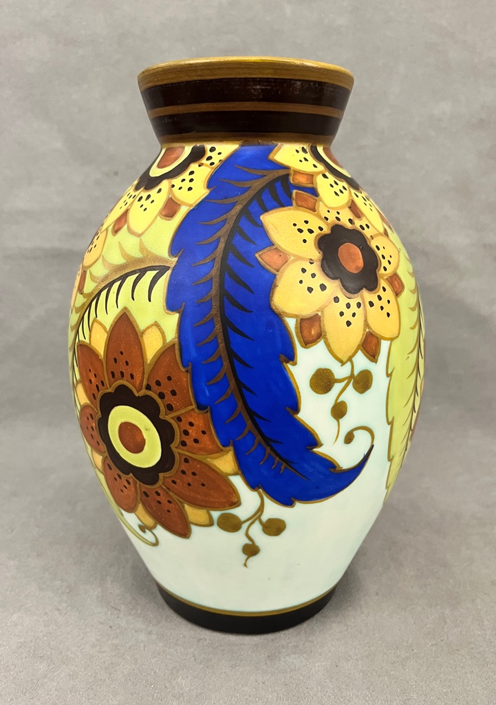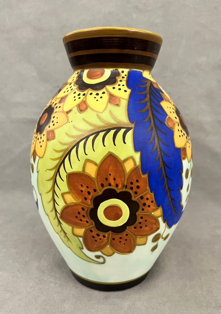 AUSTRIAN POLYCHROME PAINTED POTTERY OVOID VASE. Floral decoration. - H: 9 1/2 in.Estimate $100-150