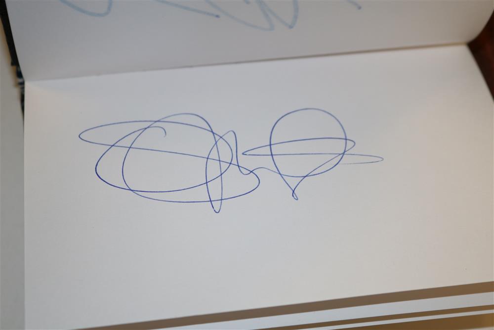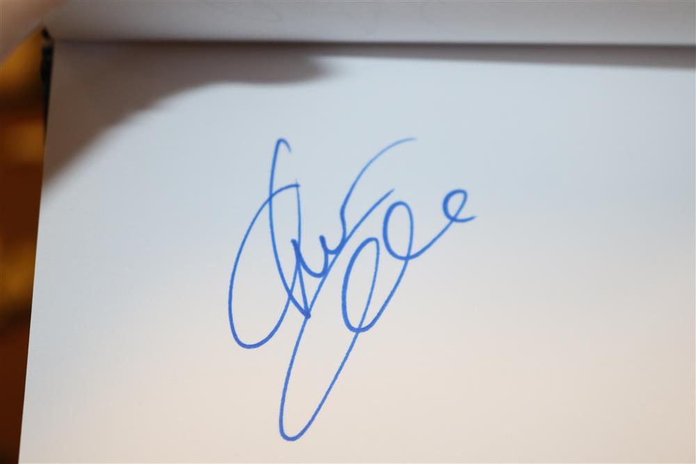 BOUND BOOK OF 108 CELEBRITY AND NOTABLE AUTHOGRAPHS INCLUDING ACTORS, MUSICIANS, JOURNALISTS, POLITICIANS AND SPORTS FIGURES ACQUIRED OVER THE PAST 50 YEARS... (BOOK 7) Michael Bolton ; Whoopi Goldberg ; Stephanie Powers ; Audra McDonald ; Tony Kornheiser ; Steven Spielberg ; Gio Gonzalez ; Madeline Albright ; Claire Danes ; Geraldo Rivera ; Hayden Panettiere ; Victor Cruz ; Olivia Munn ; Tracy Morgan ; Corey Stoll ; Michael Douglas ; Russell Simmons ; Jeremy Renner ; Patricia Arquette ; Michael J. Fox ; Olivia Wilde ; Jason Sudeikis ; Ed Helms ; Nicholas Coster ; Matthew Perry ; Denyce Graves ; Clare Bowen ; Sam Palladio ; Christopher Plummer ; Michael Kahn ; Tom McMillen ; Sen. Kelly Ayotte ; Wayne Newton ; Peggy Noonan ; Fred Applegate ; Rachael York ; Jamie Foxx ; Kris Kristofferson ; Rita Coolidge ; Ricky Skaggs ; Howard Schnellenberger ; Ed Jenkins ; Mary Fleming ; Aaron Sorkin ; Leon Wieseltier ; Amy Grant ; Freda Payne ; Maurice Hines ; Judith Ivey ; Gen. Michael Hayden ; Morgan Saylor ; Jackson Pace ; Mandy Patinkin ; Morena Baccarin ; Claire Danes ; Damian Lewis ; Henry Waxman ; Stephen Spinella ; Estelle Parsons ; Halel Esfandiari ; Christine Lahti ; Lucie Arnaz ; Bruce Vilanch ; Rosemary Watson ; Tina Fey ; Vicki Lawrence ; Tim Conway ; Carol Burnett ; Martin Short ; Sen. Mark Warner ; Amy Poehler ; Jack Noseworthy ; Will Rothhaar ; Rob Lowe ; Oliver Stone ; Sen. Diane Feinstein ; Garry Trudeau ; Matt Malloy ; Mark Consuelos ; Roy Williams ; Sen. Richard Lugar ; Tom Morello ; Wayne Shorter ; Martina Arroyo ; Billy Joel ; Chick Corea ; Oriante ; Anna Kendrick ; Rufus Wainwright ; Roberto ; Christoph Eschenbach ; Mikhail Baryshnikov ; Michael Burstyn ; Renee Taylor ; Joseph Bologna ; Deepak Chopra ; Osvaldo Rios ; Jared Gilman ; Nelson O ; Ricardo Kleinbaum ; Anne Hathaway ; John Turturro ; Romero Britto ; Tom Brokaw ; Nick Buoniconti ; Nat Moore ; Jonathan Fernandez ; Luke Fava