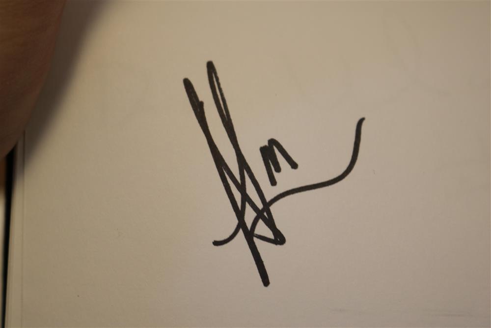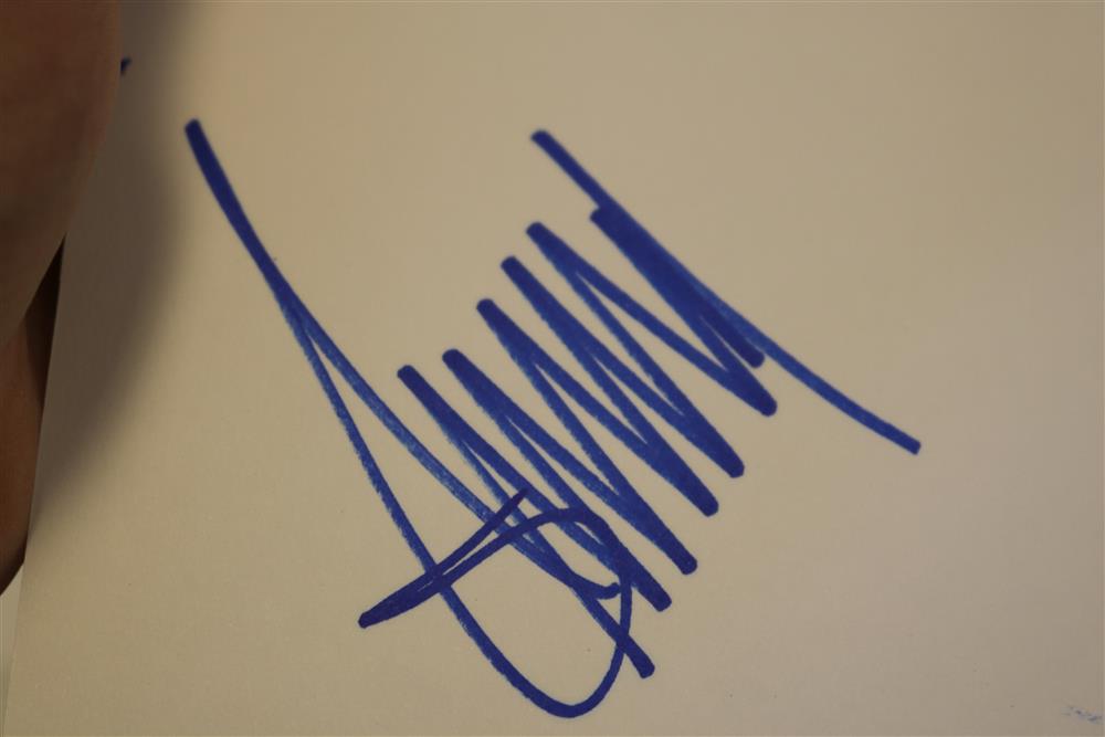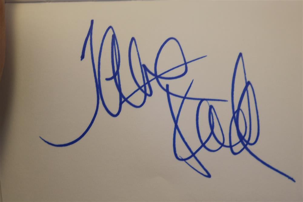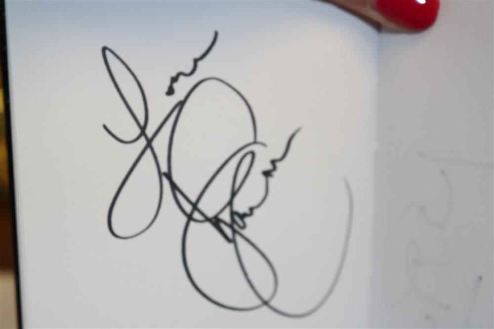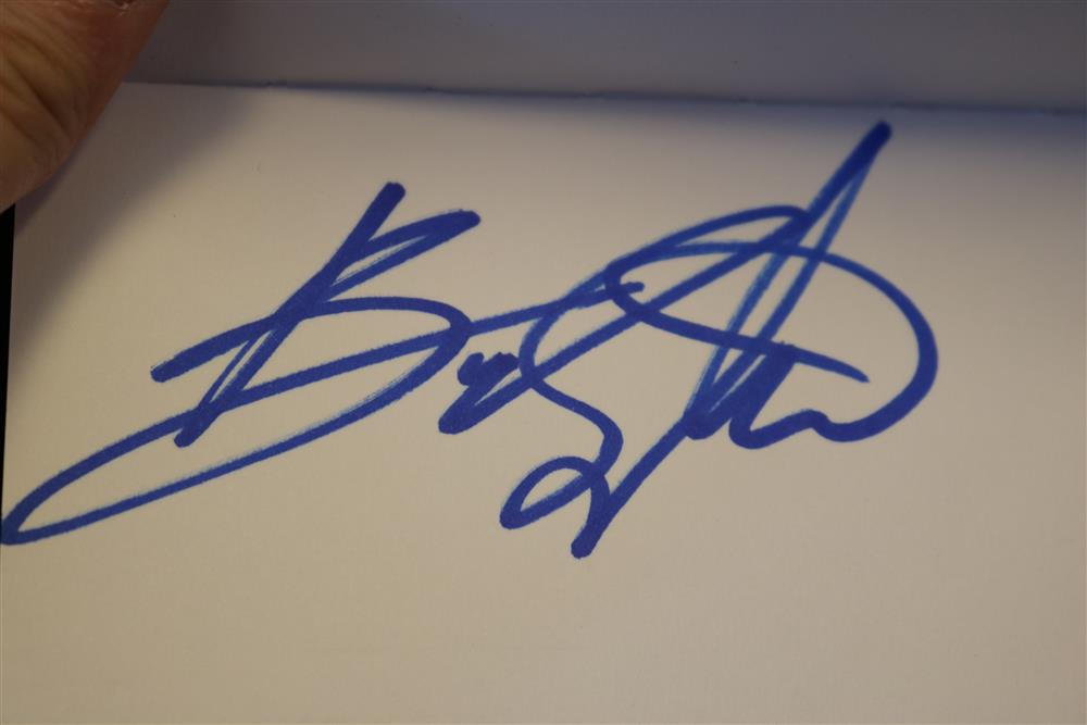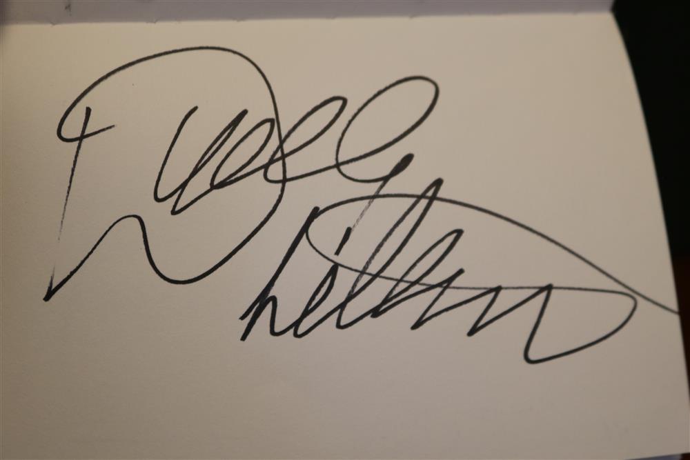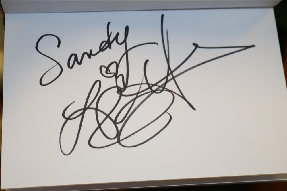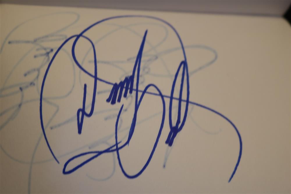 BOUND BOOK OF 109 CELEBRITY AND NOTABLE AUTHOGRAPHS INCLUDING ACTORS , MUSICIANS, JOURNALISTS, POLITICIANS AND SPORTS FIGURES ACQUIRED OVER THE PAST 50 YEARS... (BOOK 8) Donald Trump ; Keir Dullea ; Mia Dillon ; Jacov Smirnoff ; Bob Costas ; Emilio Estefan ; Gloria Estefan ; Andy Garcia ; Sonia Satra ; Heather Tom ; Nicholle Tom ; Robert Morse ; Rick McKay ; Jason Priestley ; Kevin Spacey ; Marlo Thomas ; Jeff Tambor ; Joe Morton ; Jonathan Groff ; Drake Bell ; Rep. Mike Rogers ; Ralph Nader ; LeAnn Rimes ; Gerald McRaney ; Joe Mantagne ; John Waters ; Megan Mullally ; Nick Offerman ; Lou Diamond Phillips ; Darren Criss ; Rodell Rosel ; Christine Rocas ; Philippe Quint ; Apl.de.Ap ; Michael Urie ; Lea Solange ; Derek Hough ; Julianne Hough ; Joan Rivers ; Sara Evans ; Michael McDonald ; Rita Moreno ; Dennis Miller ; Dana Garvey ; V.P. Dick Cheney ; Michael Rossato-Bennett ; Dan Cohen ; M.H. Abrams ; James Turrell ; Krista Tippett ; Diane Rehm ; Bill T. Jones ; John Dean ; Albert Maysles ; David Brion Davis ; Stanley Nelson ; David Plouffe ; Sen. Kirsten Gillibrand ; Ken Burns ; Melissa Gilbert ; Congr. Michael McCaul ; Bruce Hornsby ; Joan Lunden ; Tea Leoni ; Kelli O'Hara ; Paul Jacobs ; Amy Irving ; Judith Light ; Stacy Keach ; Danny Aiello ; Norman Lear ; Leon Panetta ; Jon Bernthal ; Michael Pena ; Shia LaBoeuf ; Brad Pitt ; Al Madrigal ; Bruce Vilanch ; Ross Mathews ; Jay Leno ; Robert Klein ; Dr. Ruth Westheimer ; Chris Nolan ; Philippe Auguin ; Isabella Rossellini ; Tony Kushner ; David Baldacci ; Rep. Eleanor H. Norton ; Berry Gordy ; Judith Jamison ; Susan Hanjo ; Brooke Shields ; Suzanne Farrell ; Chuck Todd ; Donny Osmond ; Marie Osmond ; Laura Benati ; Verdine White ; Ralph Johnson ; Giovanni Rodriguez ; Patricia McBride ; Damien Woetzel ; Reba McIntire ; Christine Baranski ; Bruce Springsteen ; Ken Arnoff ; David Letterman ; Garrison Keillor ; Jane Fonda Estimate $800-1,200
