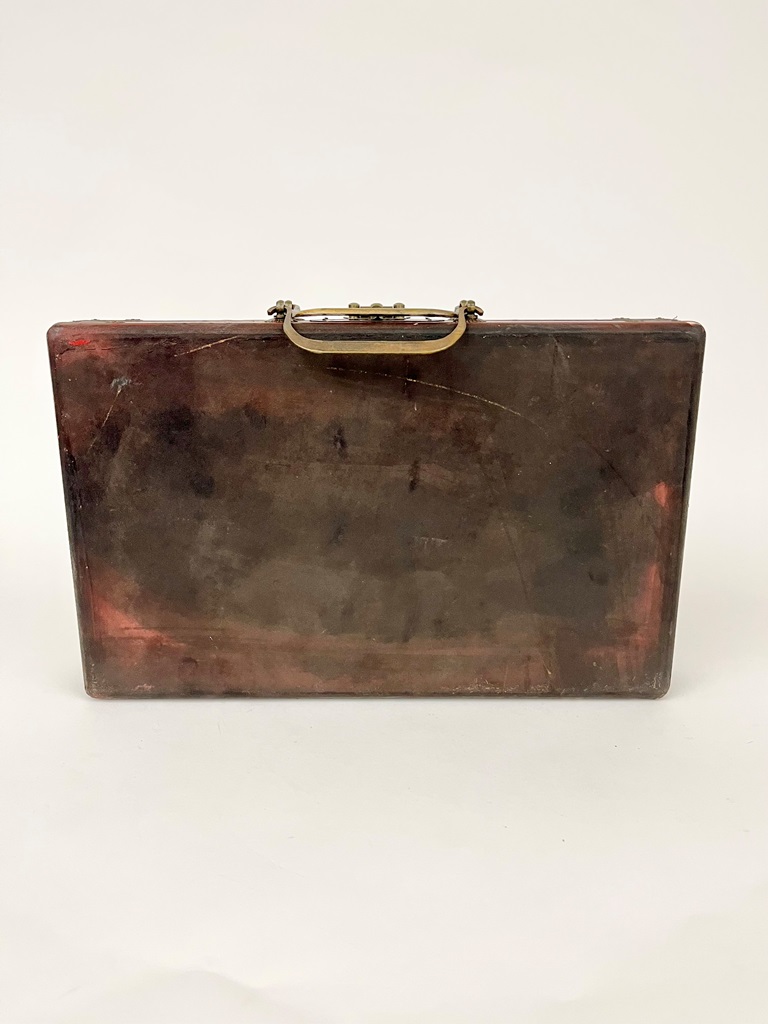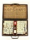 CHINESE BAMBOO AND BONE MAHJONG SET IN GILT DRAGON DECORATED RED CASE. Case, 12 1/2" x 7 7/8"Estimate $50-100