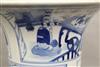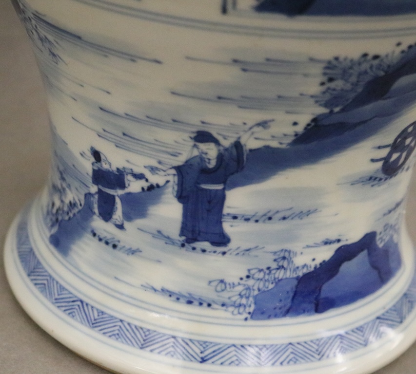 CHINESE BLUE AND WHITE PORCELAIN BALUSTER-FORM VASE. Panels depicting figures in landscapes and pavilions, six-character mark under foot - H: 17 1/2 in.Estimate $200-300