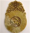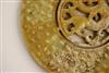 CHINESE EASTERN HAN JADE BI DISC. Patinated and incised yellow and calcified jade Bi disc with dragons and phoenixes and with characters "Chang le", "Happiness". Eastern Han dynasty. 27 cm 10.8 inches. Reference: " Jadeware I. The Complete Collection of Treasures of the Palace Museum", 1995 p.260, fig. 217. Lot is presented in a fitted box. Note: The Han dynasty was a Chinese imperial dynasty that ruled from 206 BCE to 220 CE. NOTE: A copy of the consignor's purchase receipt will be provided upon request. Estimate $600-1,000 PROVENANCE: Acquired in the early 1990s from Frank H. Crane's "The Hundred Antiques" store (Stirling, Ontario, Canada). Mr. Crane was a frequent visitor to Hong Kong where he acquired Archaic jades mainly from Mr. Lai Loy's well known and prominent shop near the Man Mo Temple on Hollywood Road. Mr. Lai (Chinese, 1926-2012) was the descendent of antique dealers from Guangzhou, China. In 2005, stones from the collection were verbally authenticated by Dr. Sarah Milledge Nelson (American, 1931 - 2020), a noted archaeologist and Distinguished Professor Emerita from the Department of Anthropology, University of Denver.