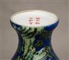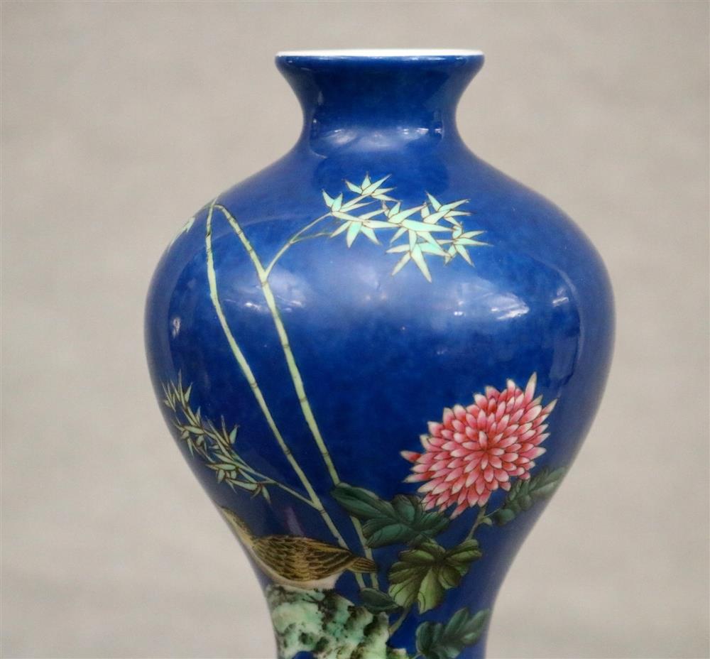 CHINESE HAND-PAINTED COBALT BLUE GLAZED PORCELAIN MEIPING VASE, 19th century. Guangxu Emperor's mark (six-character mark)at base indicates it was likely made during the Guangxu period (1875–1908) of the Qing Dynasty. - Height: 6 inches. Estimate $100-150