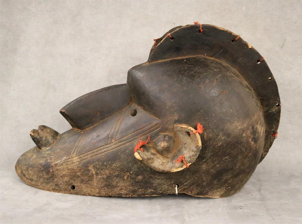 CONGOLESE LWALWA CEREMONIAL BANGONGO NKAKI MASK. Ceremonial bangongo mask from the Lwalwa People located in the region where the Kasai River marks the border between Zaire and Angola. The masks had an important function in the bangongo dance of the hunting ritual. When hunters returned empty-handed, the ancestors would be appeased by organizing a dance. The masks were also used in a secret ritual of the bangongo society, in charge of initiation and circumcision of young men. - Height (approximately): 21 inches. Estimate $200-250