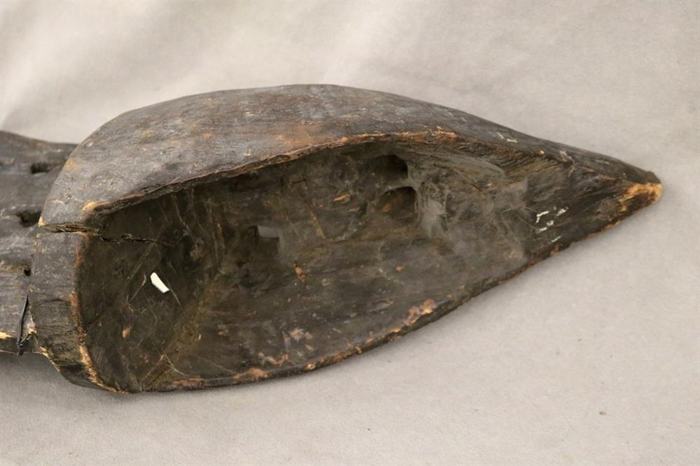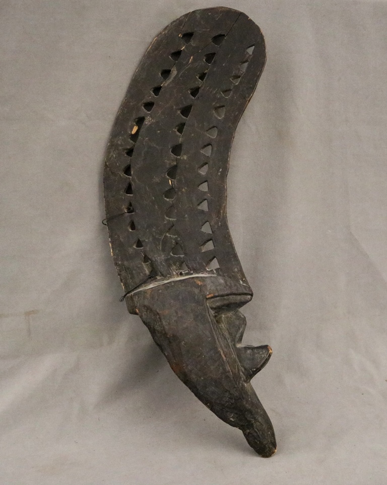 CONGOLESE LWALWA MFONDO HUNTING MASK. "Mfondo" hunting mask from the Lwalwa ethnic group of the Democratic Republic of Congo. This specific type of mask is associated with hunting rituals and practices of the Lwalwa people. - Height: approx 27 inches. Estimate $150-250