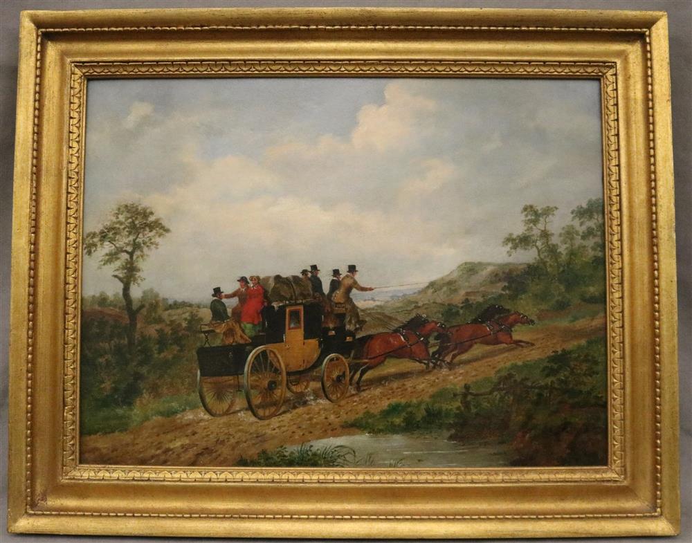 DEAN WOLSTENHOLME THE YOUNGER (British, 1798-1883). Two works: "A Coach" and "Four Crossing a Ford", Pair of paintings. Oil on canvas. Signed. Framed. Individually framed. - Each (sight)18 x 24 inches (excluding frame) Estimate $2,000-3,000 Provenance: With John Bennett Fine Paintings (London), 2002 There acquired