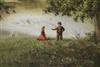 ENGLISH SCHOOL (19th century). Landscape with Children Playing. Oil on canvas. Unsigned. Framed.Estimate $250-350