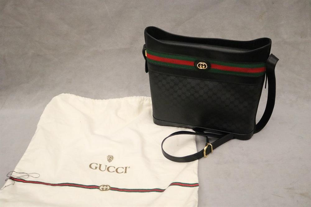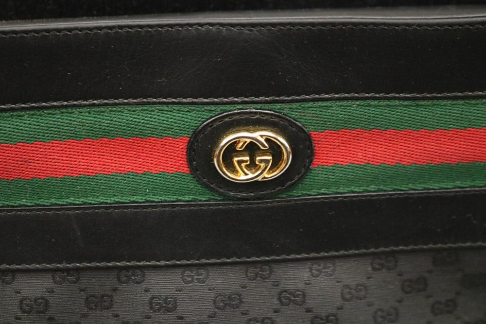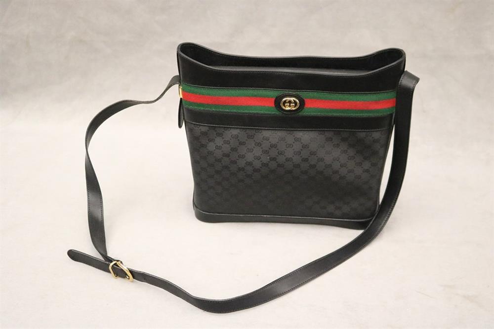 GUCCI MICRO GG SUPREME SHERRY LINE SHOULDER BAG. Black PVC and leather. With Gucci dustbagEstimate $200-400