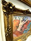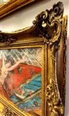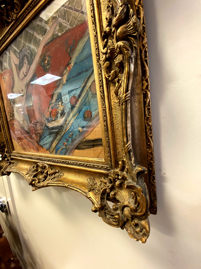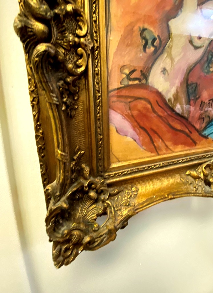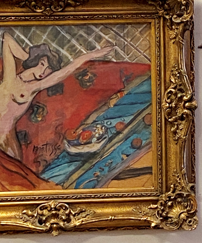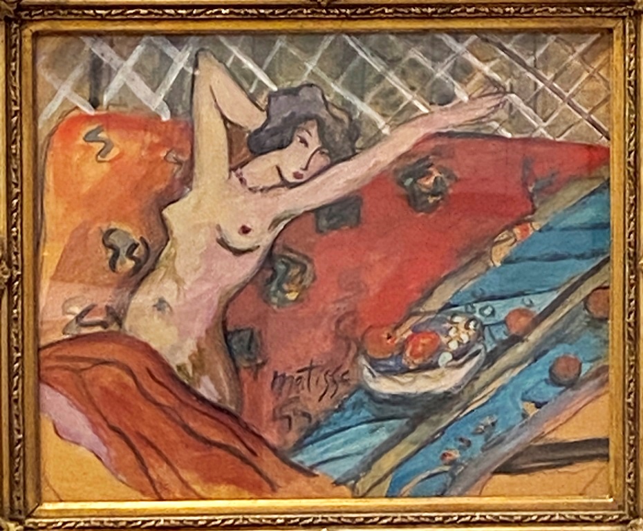 IMITATOR OF HENRI MATISSE (20th century). Nude on a Red Sofa, Mixed media (pencil, watercolor, gouache) on board. Signed "MATISSE 55" at base. Framed. Not examined out of frame. - Sight: 14.5 x 17.5 inches; frame: 22 x 24.5 inches Estimate $250-350