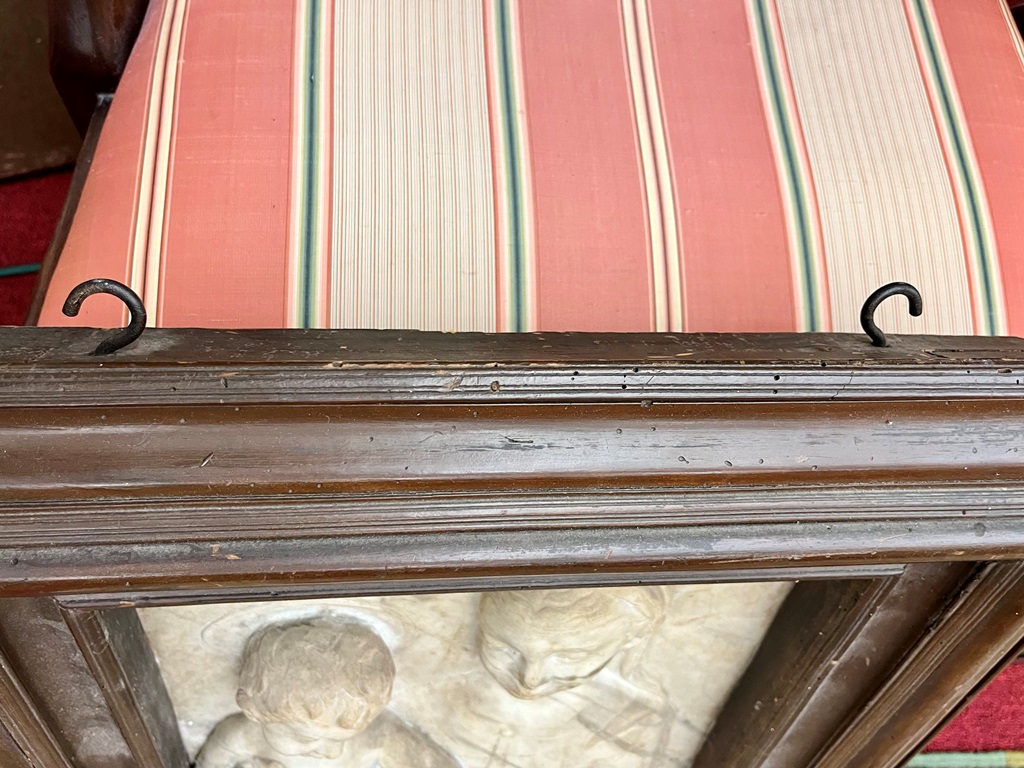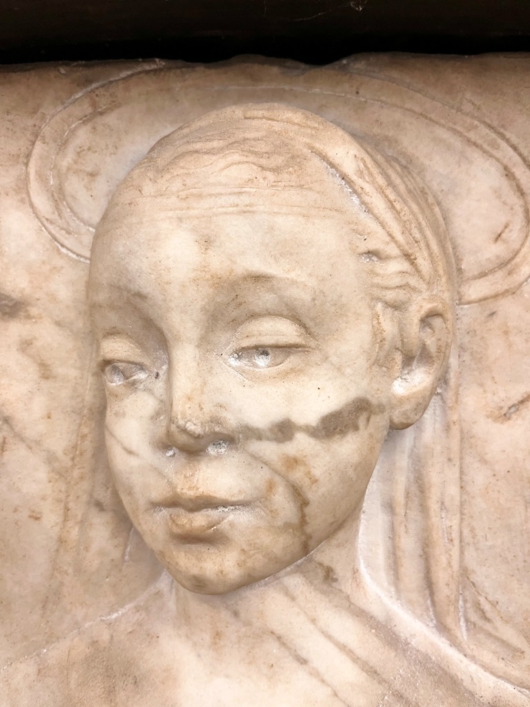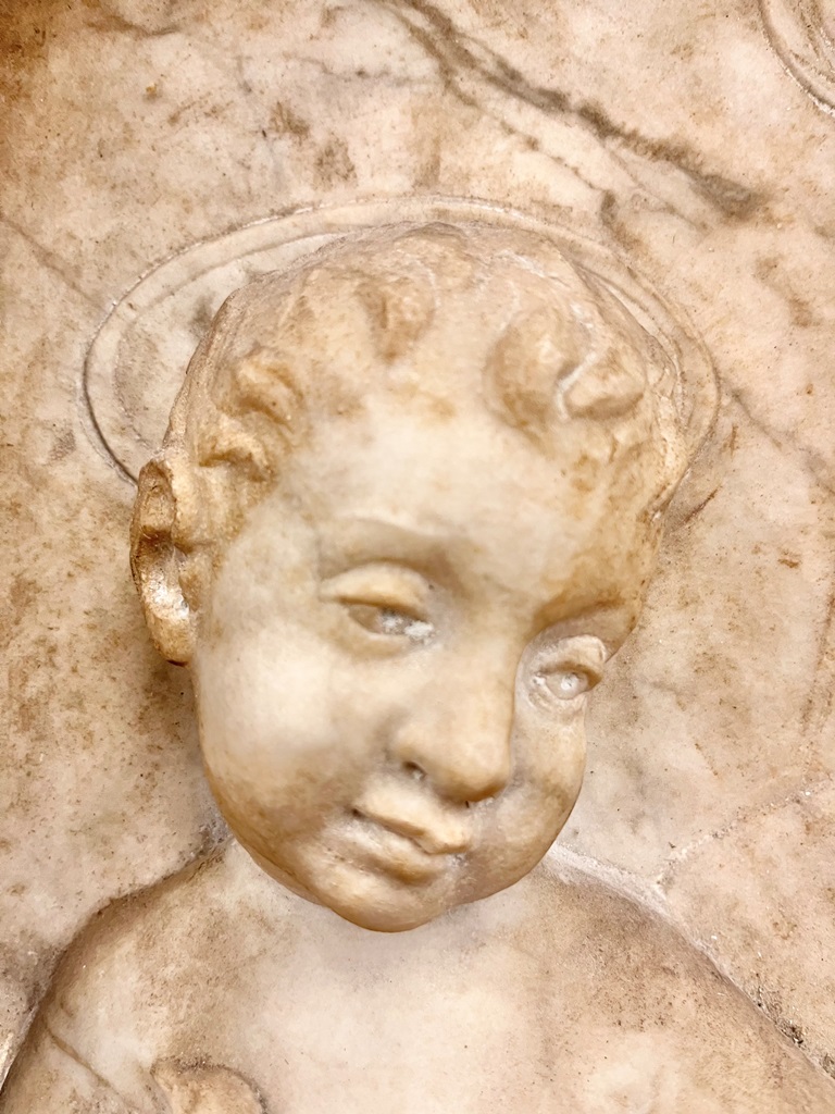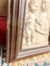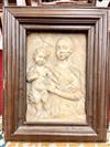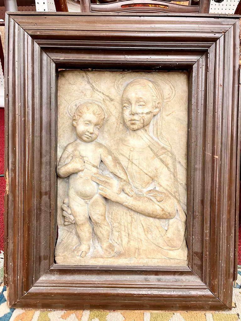 IN THE MANNER OF GREGORIO DI LORENZO (Italian, circa 1436 - 1504). Madonna and Child, 18th century or later chiseled marble high relief after the work of early Italian artists such as Gregorio Di Lorenzo. Marble relief is within an 18th century continental patinated picture frame. - 17 in. x 11 1/2 in. Frame size: 25 in. x 20 in. Estimate $2,500-3,500