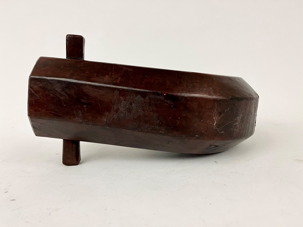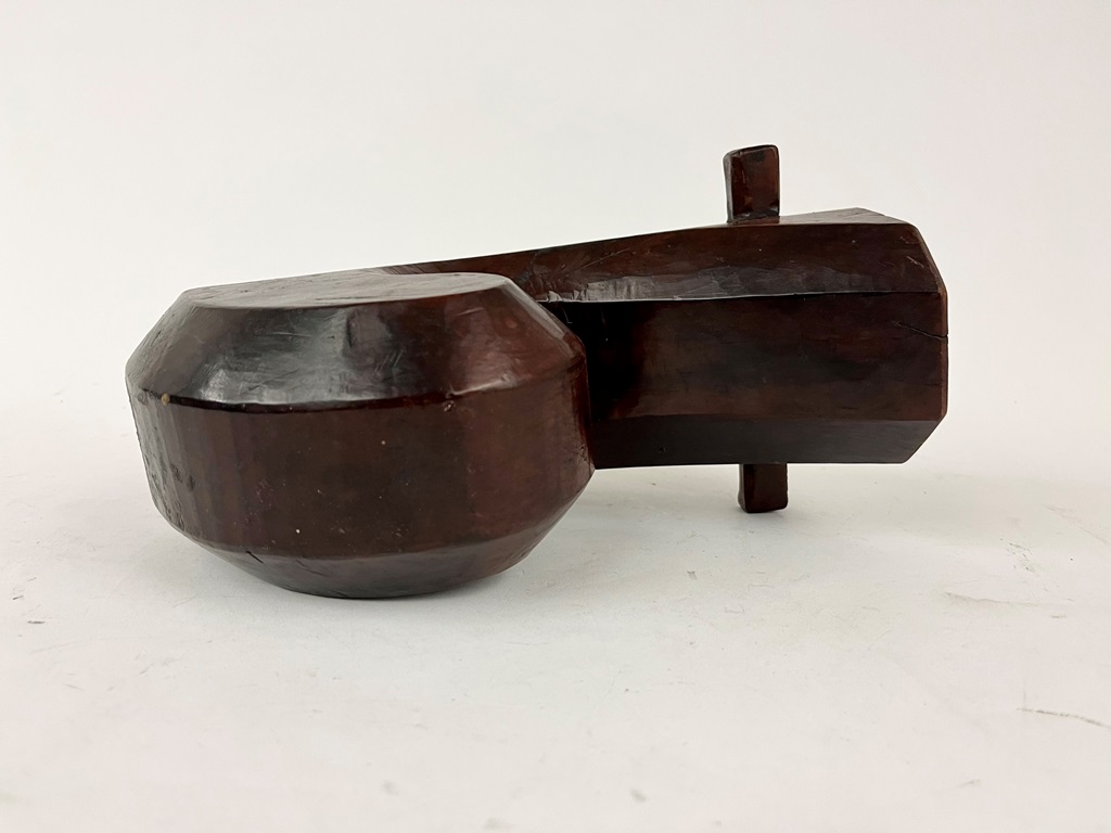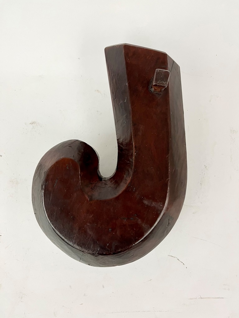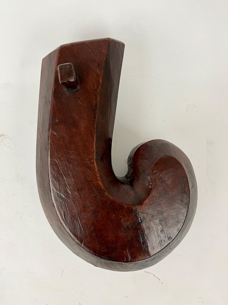 JAPANESE CARVED WOODEN HEARTH HOOK OR JIZAI KOGI, Meiji period. Carved from a single piece of Keyaki Wood with faceted edging.Estimate $175-225